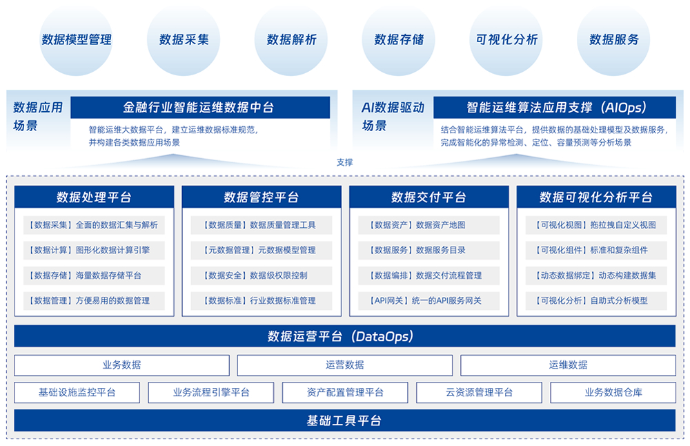 通过平台整合各种运维工具的数据和服务能力,,,在保证数据隐私和安全的前提下,,通过大数据技术等手段,,,,来解决 IT 系统运行过程中产生的海量数据分析问题,,,,并将分析结果通过数据共享服务提供给各类上层应用,,,,帮助 IT 运维和管理人员全面了解系统运行状态,,提升可用性。。